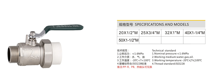 产品名称:PP-R通径外丝活接球阀 产品型号:CL0008 查看次数: