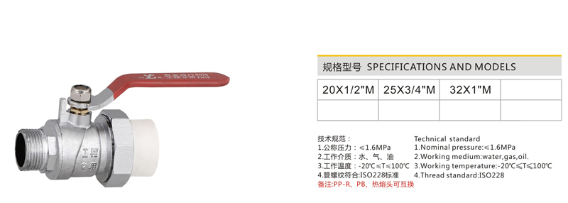 产品名称:PP-R全铜外丝活接球阀(镀铬) 产品型号:CL0011 查看次数: